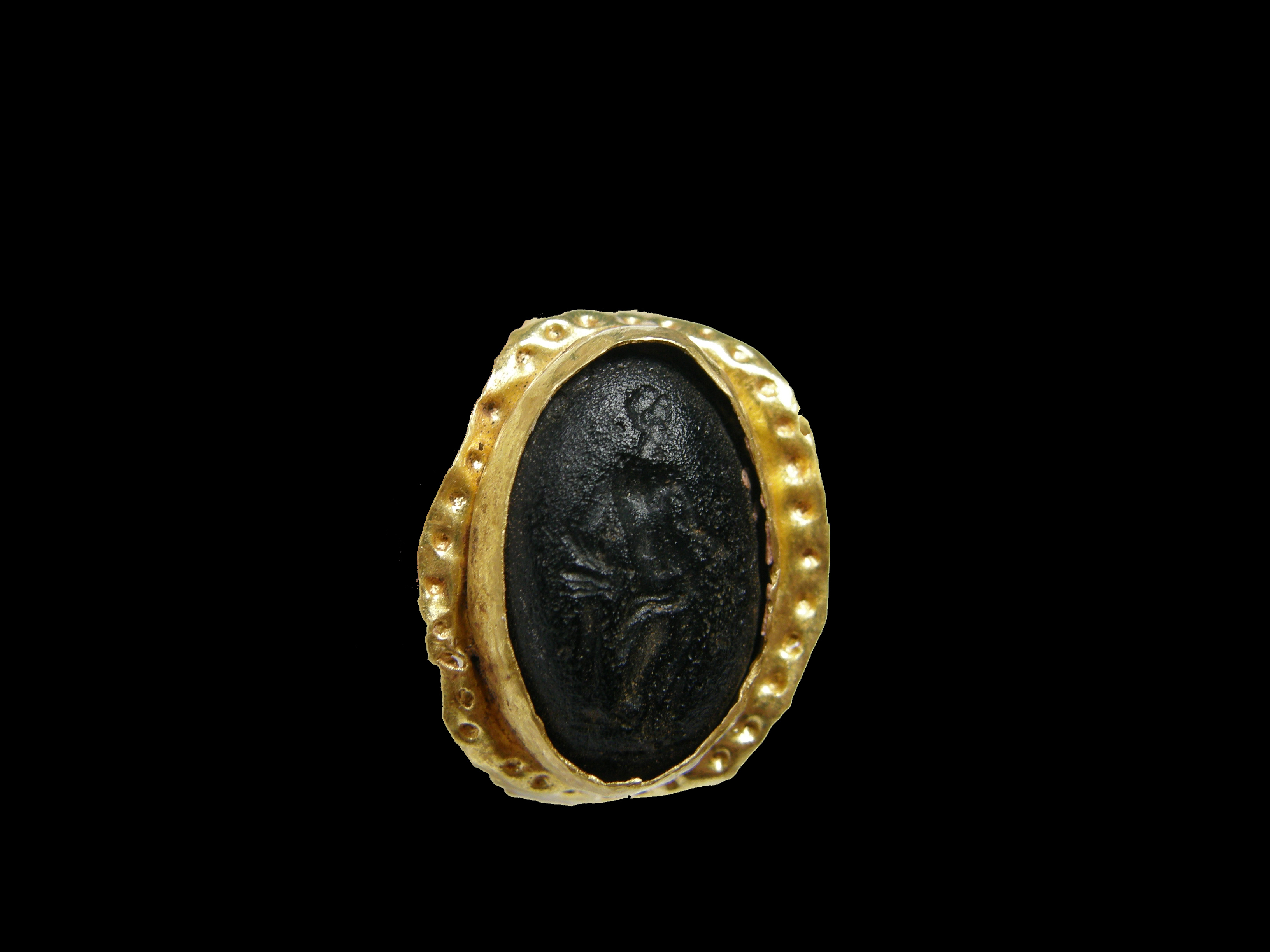 CHAsset: Δακτύλιος, χρυσός, με υαλόμαζα με μορφή Απόλλωνα(;)