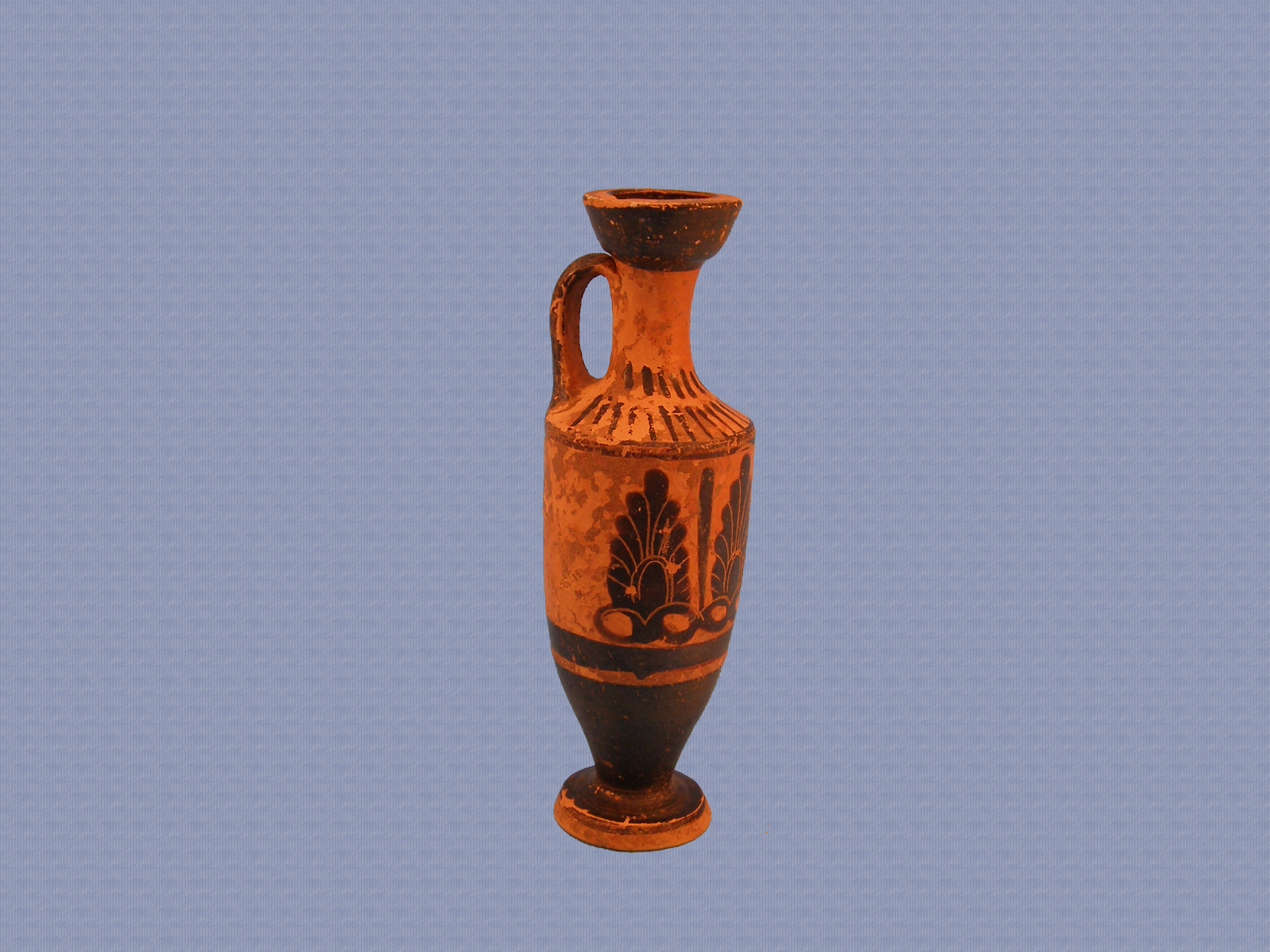 Αττική μελανόμορφη λήκυθος διακοσμημένη με ανθέμια.