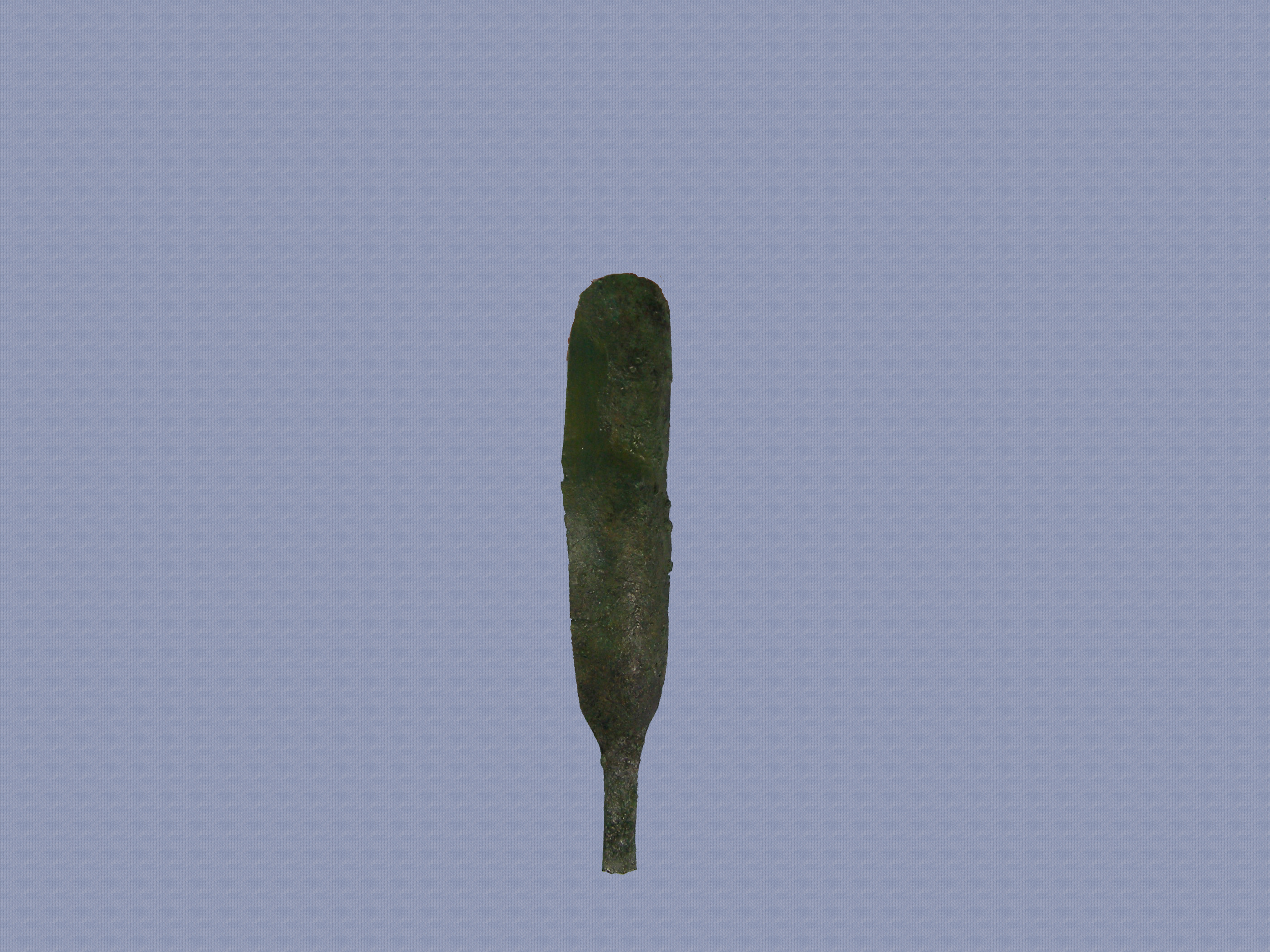 Χάλκινη στλεγγίδα. Είναι συγκολλημένη από δύο θραύσματα (ΑΕ4790 και ΑΕ4792) και ελλιπής στη λαβή.