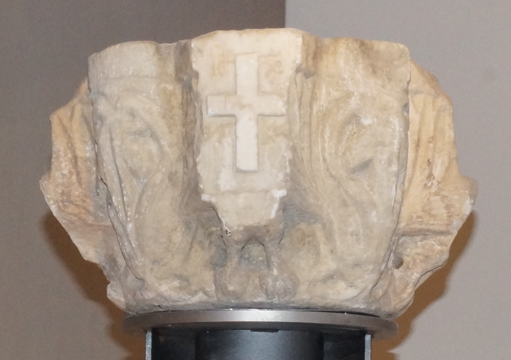 Πτυχωτό κιονόκρανο με ανάγλυφη διακόσμηση ανεστραμμένων κρινανθέμων και σχηματοποιημένων φύλλων. Μια γωνία απολαξεύθηκε μεταγενέστερα και κοσμείται από ανάγλυφο σταυρό. Φέρει εγχάρακτη επιγραφή IC=X/ NI=KA, στις γωνίες που σχηματίζει ο σταυρός.