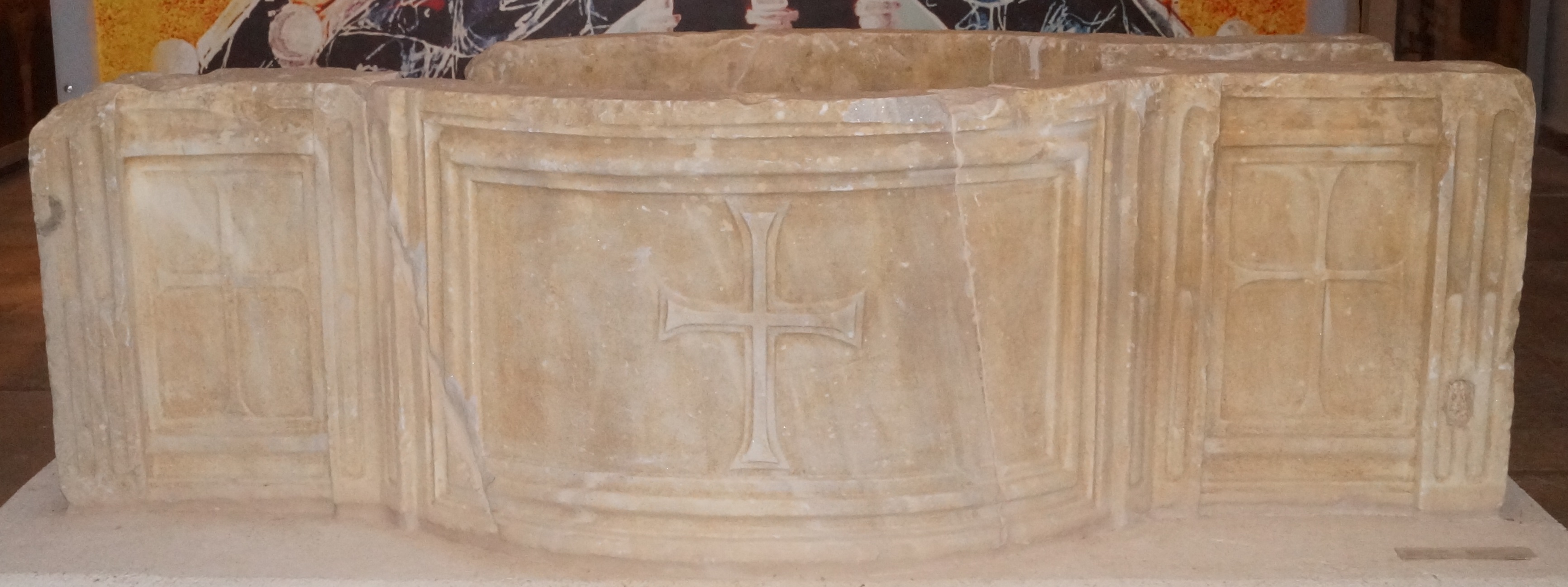 Δύο πλευρές μαρμάρινου παλαιοχριστιανικού άμβωνα. Φέρουν παράσταση σταυρού στα δύο κοίλα τμήματα καθώς και στις ορθογώνιες πλευρές εκατέρωθεν των κοίλων τμημάτων. Από τη μία πλευρά σώζονται ακέραια και τα τρία τμήματα, από την άλλη απουσιάζει το ένα πλαϊνό.