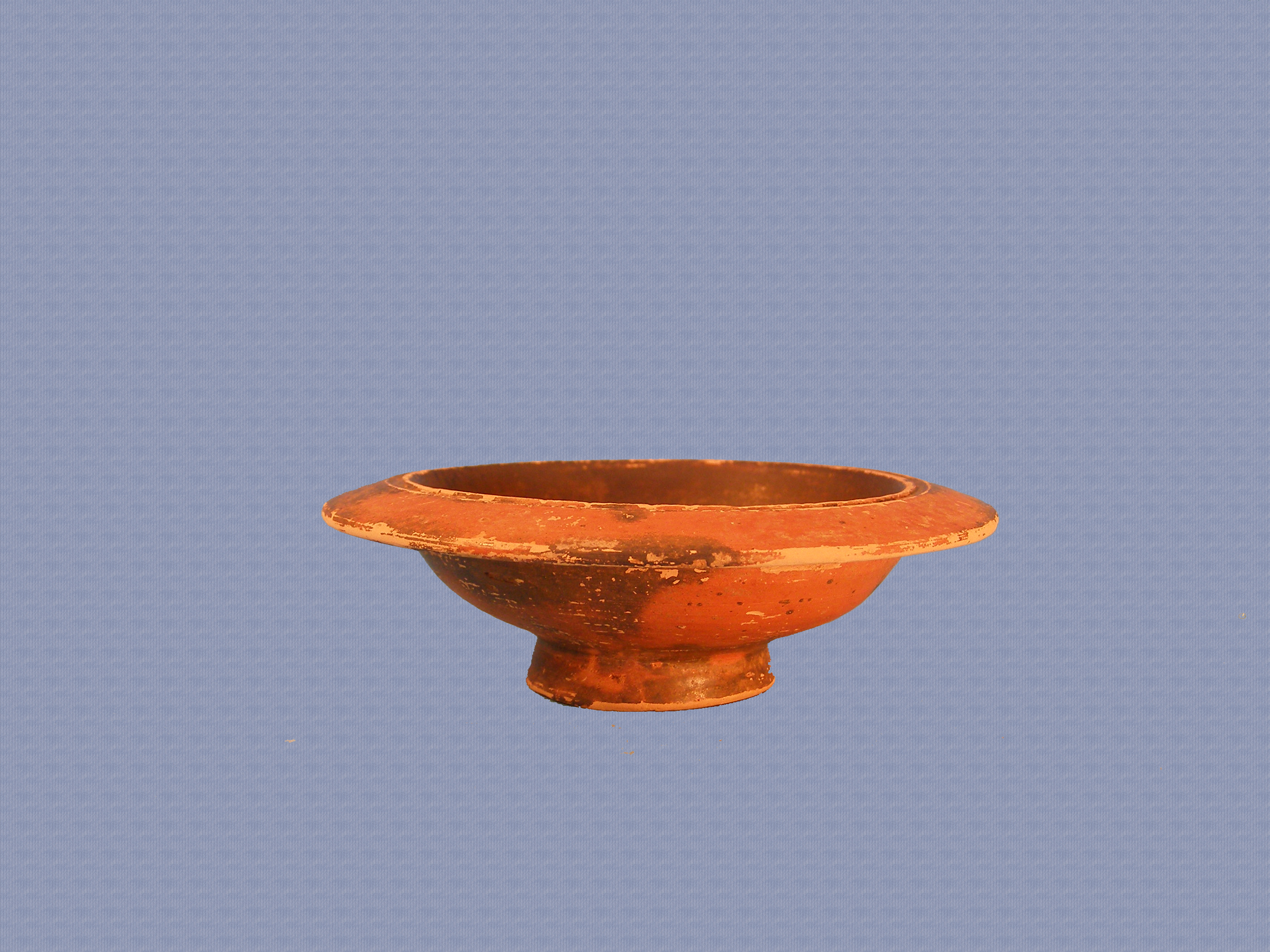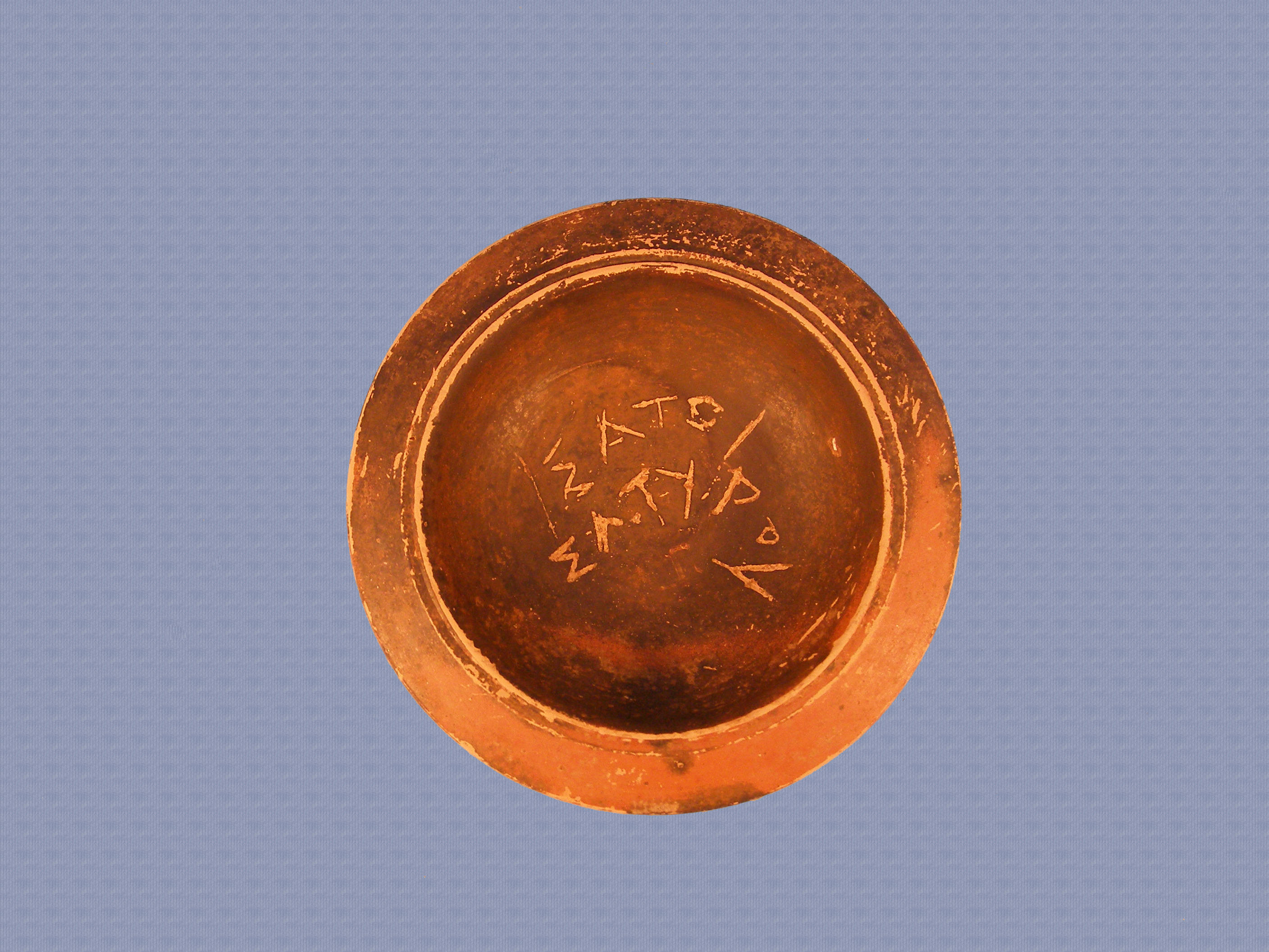 Τεφροδόχος αμφορέας "κυπριακού τύπου" με πώμα, συγκολλημένος σε μεγάλο τμήμα του σώματος και του πώματος. Φέρει βάση δακτυλιόσχημη, υπόκοιλη στην επιφάνεια έδρασης. Το σώμα είναι ψηλό ωοειδές, ο λαιμός ψηλός κυλινδρικός που απολήγει σε πεπλατυσμένο έξω νεύον χείλος και οι λαβές κυλινδρικής διατομής με πολλαπλές νευρώσεις κατά μήκος τους εκφύονται και απολήγουν στον ώμο του αγγείου. Το εσωτερικό του αγγείου και το χείλος του φέρουν μελανό γάνωμα. Λίγο πιο ψηλά από τη βάση, διακρίνεται φαρδιά οριζόντια μελανή ταινία, η οποία ορίζεται άνω και κάτω από δύο λεπτούς οριζόντιους δακτυλίους. Από αυτούς εκφύονται τέσσερα κάθετα φοινικοειδή άνθη με πέντε φύλλα το καθένα (από δύο άνθη στην κάθε όψη του αγγείου) που απολήγουν κοντά στη βάση του λαιμού, η οποία κοσμείται με οριζόντια μελανή ταινία, ύψους 1,3 εκ., κάτω από την οποία βρίσκεται λεπτότερος δακτύλιος. Δύο ακόμη οριζόντιες μελανές ταινίες, ύψους 1,3 εκ.η καθεμιά, κοσμούν το μέσον του λαιμού και το ανώτερο τμήμα του. Ανάμεσα από τις τρεις αυτές οριζόντιες ισοϋψείς ταινίες, λεπτοί οριζόντιοι δακτύλιοι περιτρέχουν το λαιμό του αγγείου. Οι λαβές του αγγείου φέρουν μελανό γάνωμα στο άνω ήμισυ της επιφάνειάς τους και εκατέρωθεν αυτών τέσσερα κάθετα σχηματοποιημένα λογχόσχημα φύλλα (δύο σε κάθε λαβή), τα οποία εκφύονται από την ζώνη των ταινιών που βρίσκεται κοντά στη βάση του αγγείου και απολήγουν στη βάση του λαιμού. Το πώμα του αγγείου φέρει μελανό γάνωμα κακής όπτησης. Πρόκειται για πινάκιο σε δεύτερη χρήση ως πώμα τεφροδόχου. Βάση ψηλή, δακτυλιόσχημη, υπόκοιλη στην επιφάνεια έδρασης η οποία φέρει μαστοειδή απόφυση. Σώμα ημισφαιρικό που απολήγει σε πεπλατυσμένο έξω νεύον χείλος. Η μετάβαση από το σχεδόν οριζόντιο χείλος προς το εσωτερικό του αγγείου (το οποίο φέρει επιγραφή με το όνομα του νεκρού ΣΑΤΩΙ/ΣΑΤΥΡΟΥ) γίνεται με αβαθή αυλάκωση.