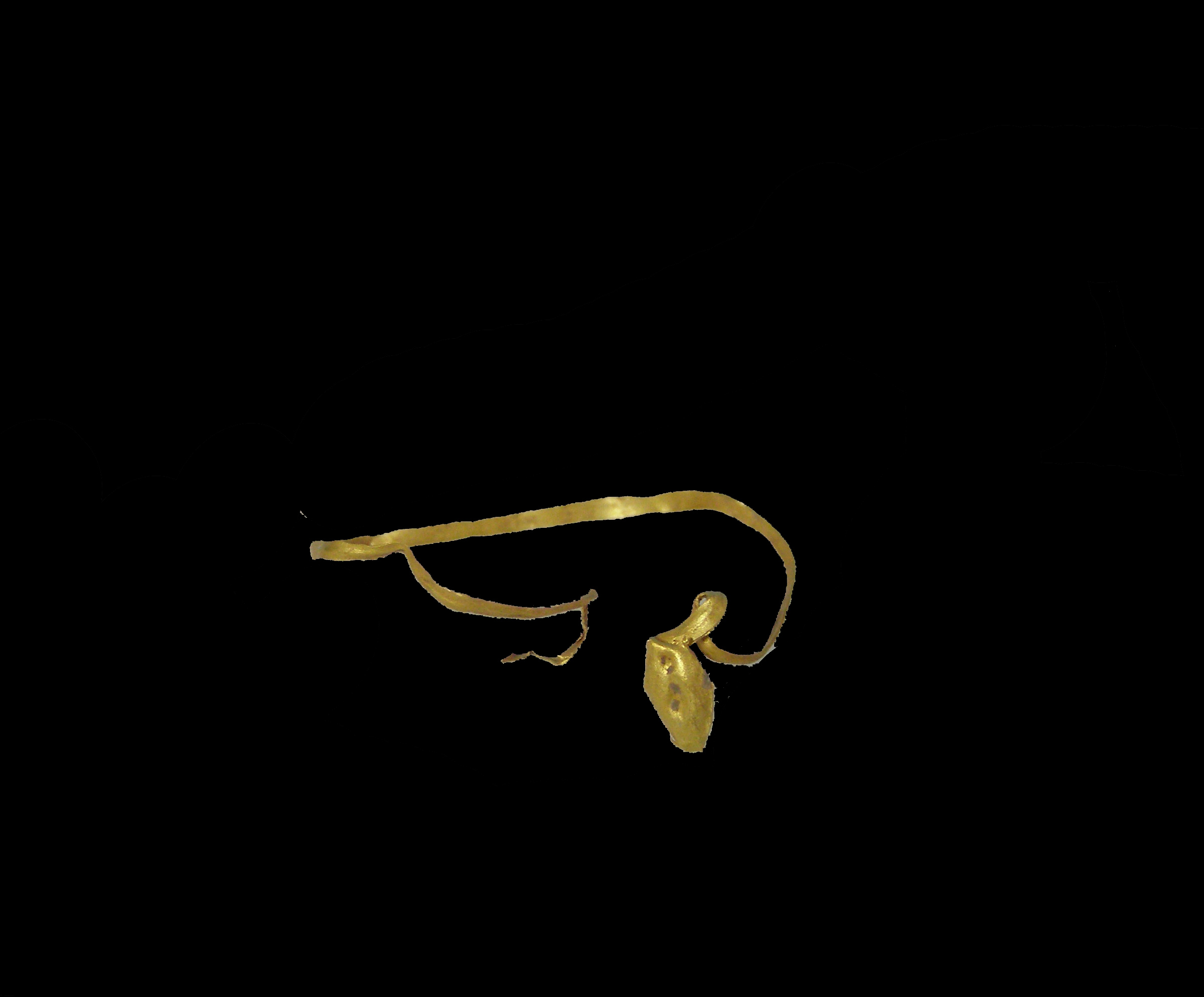 Χρυσή ταινία, που απολήγει σε πεπλατυσμένο άκρο και ίσως μιμείται κεφαλή φιδιού.