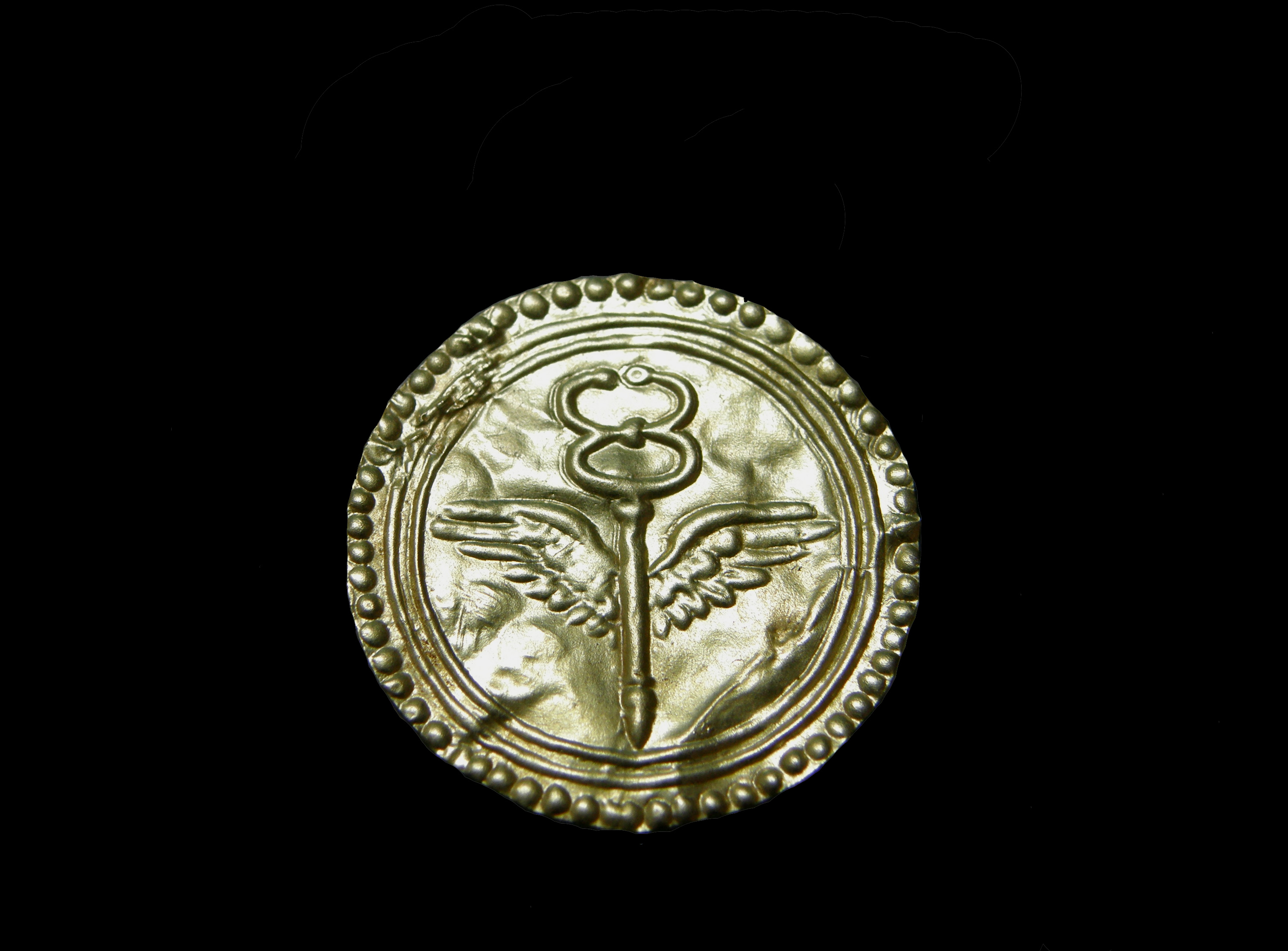 Η δανάκη είναι χρυσή, κυκλική και διακοσμείται από ανάγλυφο κηρύκειο, δηλαδή ένα ραβδί με φτερά εκατέρωθεν και στην κορυφή του ένα κύκλο με ένα ημικύκλιο από πάνω σαν ένα ανοιχτό στο πάνω μέρος του 8, το οποίο απεικονίζεται μέσα σε δύο ομόκεντρους έκτυπους (ανάγλυφους) κύκλους και σε ένα τρίτο από ανάγλυφες στιγμές (κουκίδες).
