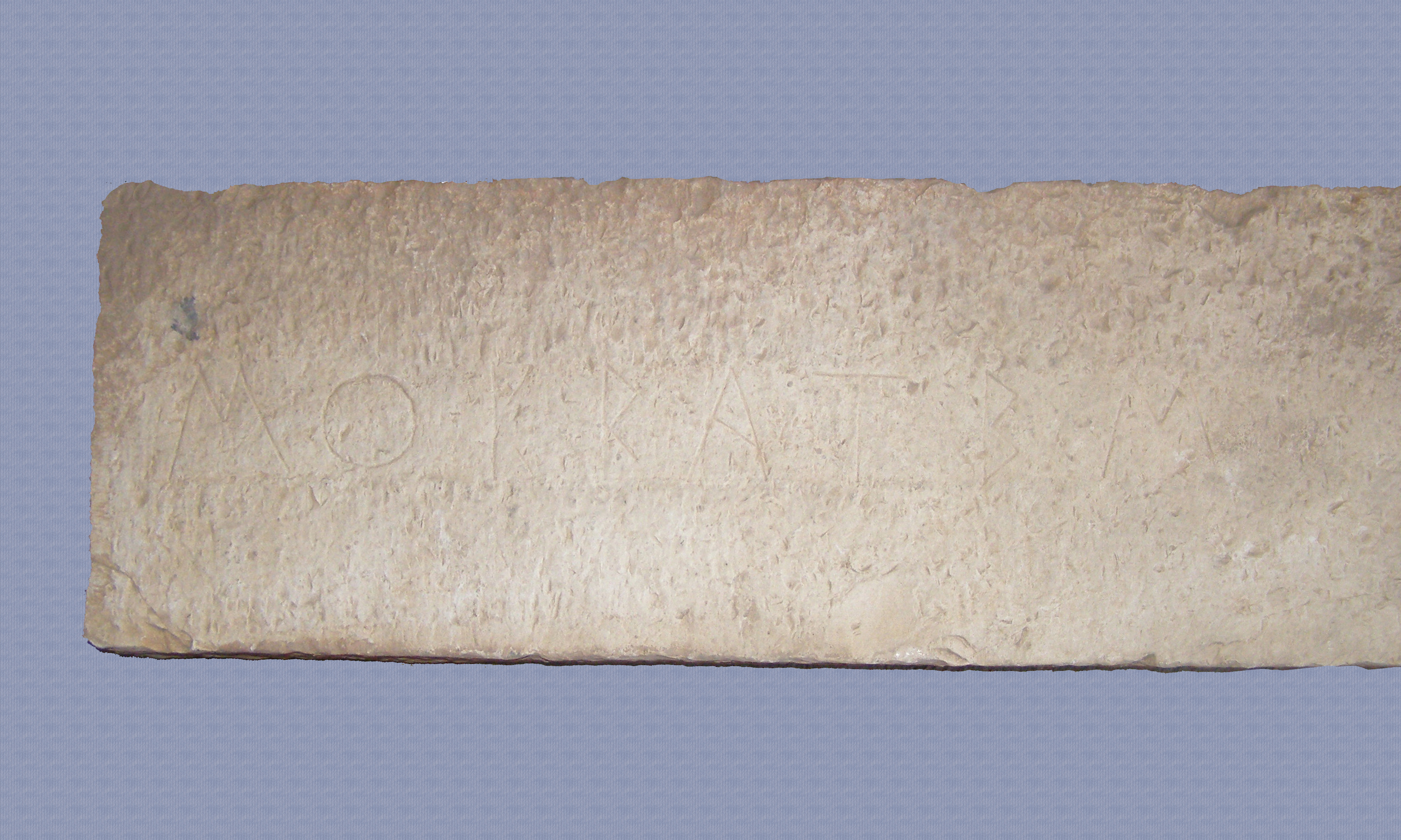 Ενεπίγραφη επιτύμβια στήλη, επιμήκης, σπασμένη στο κατώτερο τμήμα. Εμφανίζει ανεπαίσθητη μείωση προς τα πάνω. Το όνομα του νεκρού είναι χαραγμένο κατακόρυφα, σε κορινθιακό αλφάβητο: «ΣΟΚΡΑΤΕΣ». Διακρίνεται η χρήση βελονιού στο πεδίο της μπροστινής όψης. Σκουρόχρωμα ιζήματα υπάρχουν στη δεξιά πλευρά.
