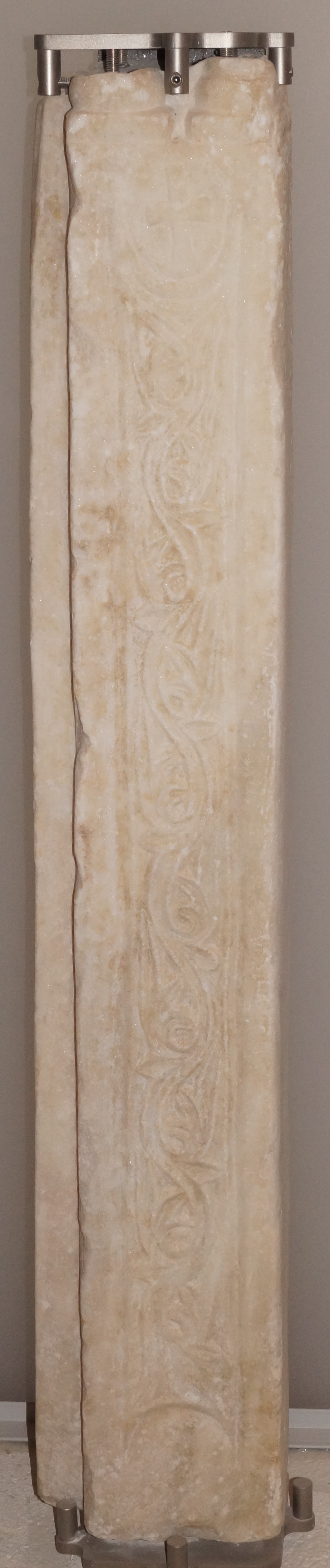 Πεσσίσκος τέμπλου με ανάγλυφη διακόσμηση ελικοφύλλων και ημιανθεμίων στην μπροστινή πλευρά. Στο ανώτερο σημείο κοσμείται από, μικρού μεγέθους, ανάγλυφο σταυρό.