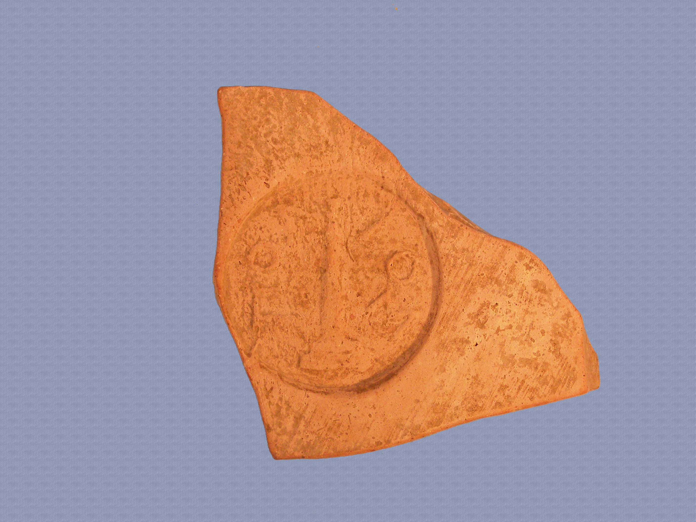 CHAsset: Τμήμα κεράμου με παράσταση βαίτυλου και την επιγραφή: "ΠΟΛΙΟΣ"