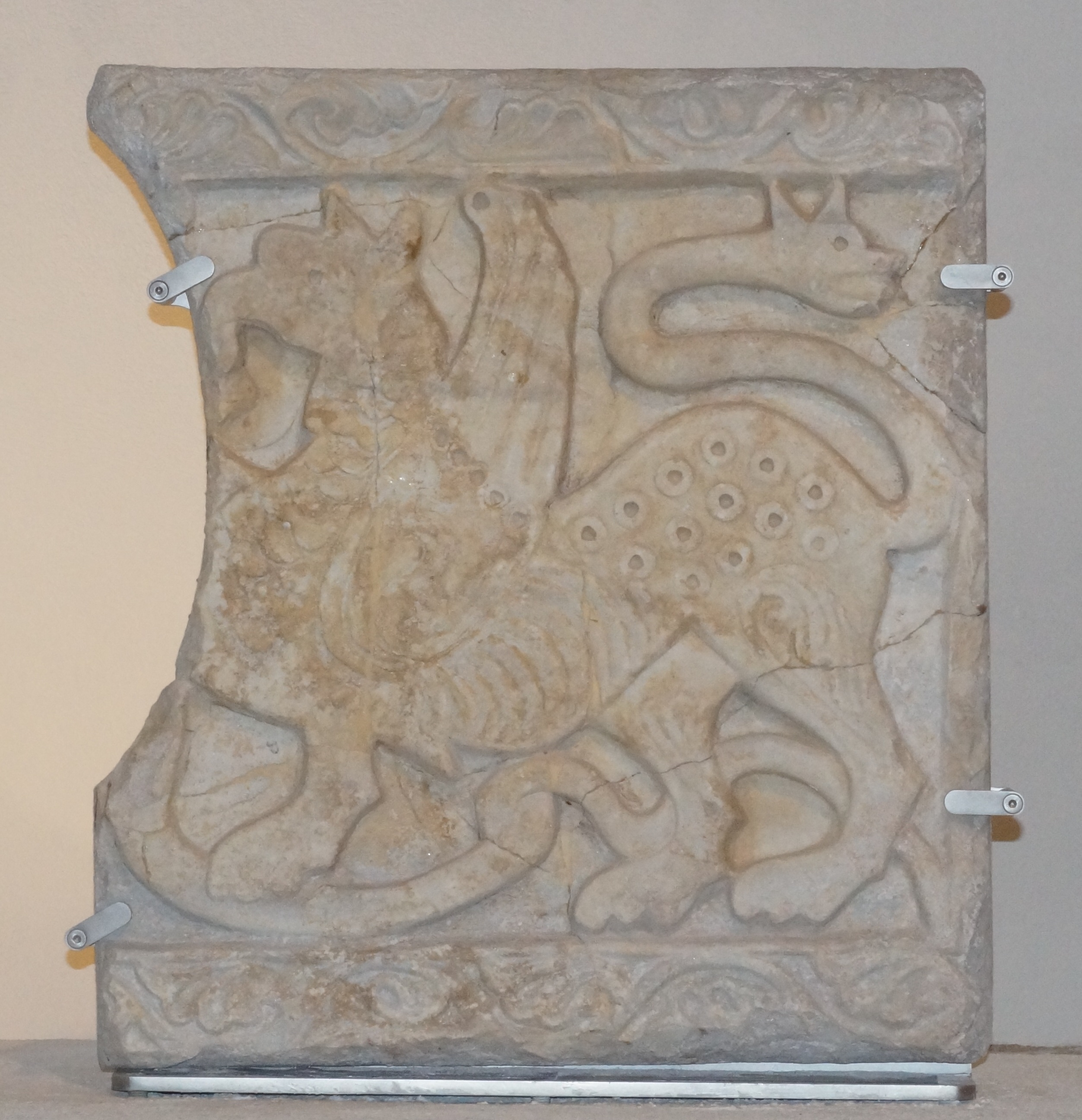 Τμήμα θωρακίου τέμπλου αποκεκρουμένο στη μία πλευρά με ανάγλυφη παράσταση γρύπα και δύο συμπλεκόμενων φιδιών. Στο άνω και στο κάτω μέρος φέρει ζώνη με ορθά και ανάστροφα φύλλα άκανθας.