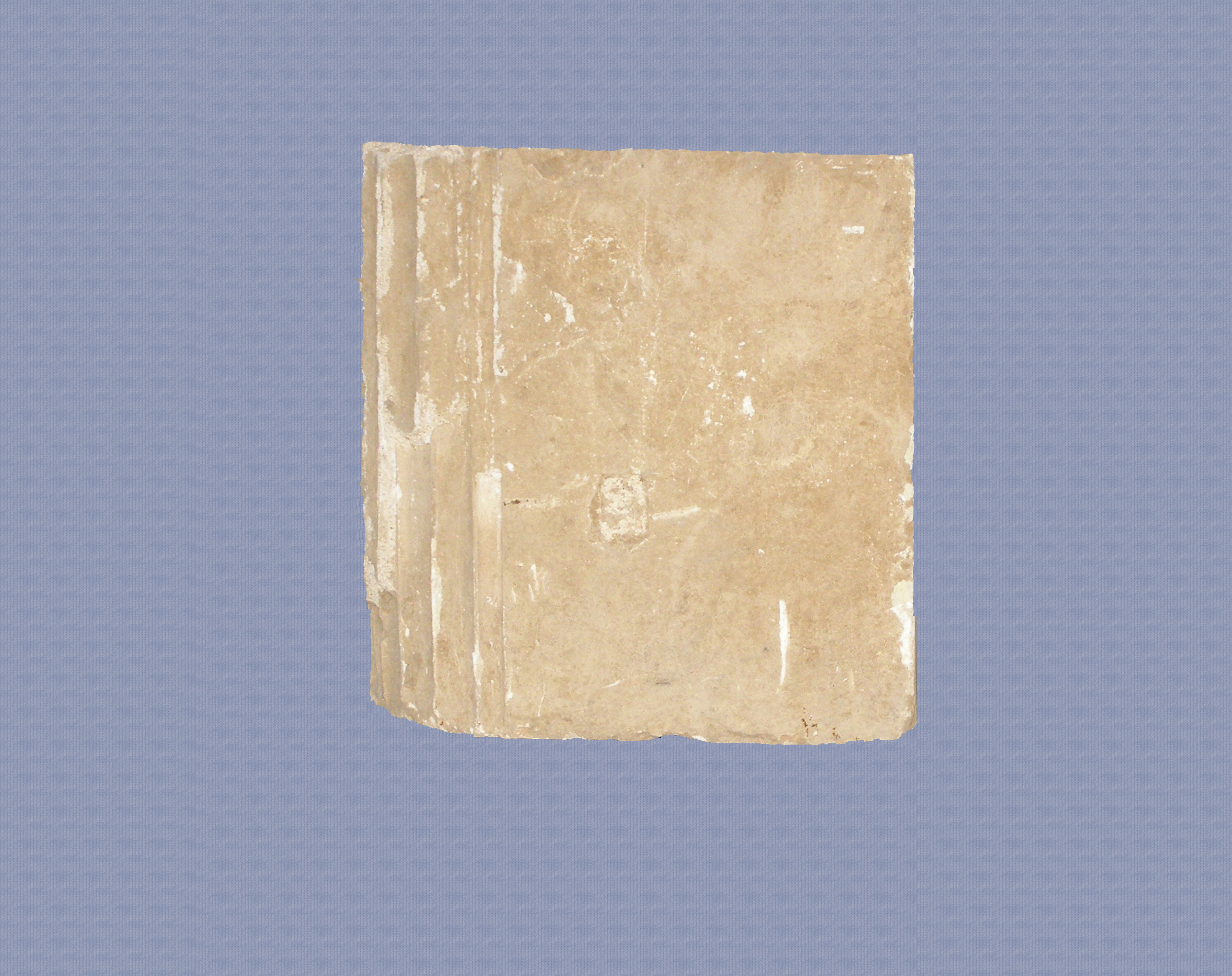 Ορθοστάτης από αμμόλιθο. Η μία πλευρά του διαμορφώνεται ως ημικίονας με κάθετες ραβδώσεις. Καλύπτεται από κονίαμα, το οποίο παρουσιάζει σε ορισμένα σημεία φθορές, εκτός από τις επιφάνειες έδρασης που έχουν λειανθεί και δεν φέρουν κονίαμα.