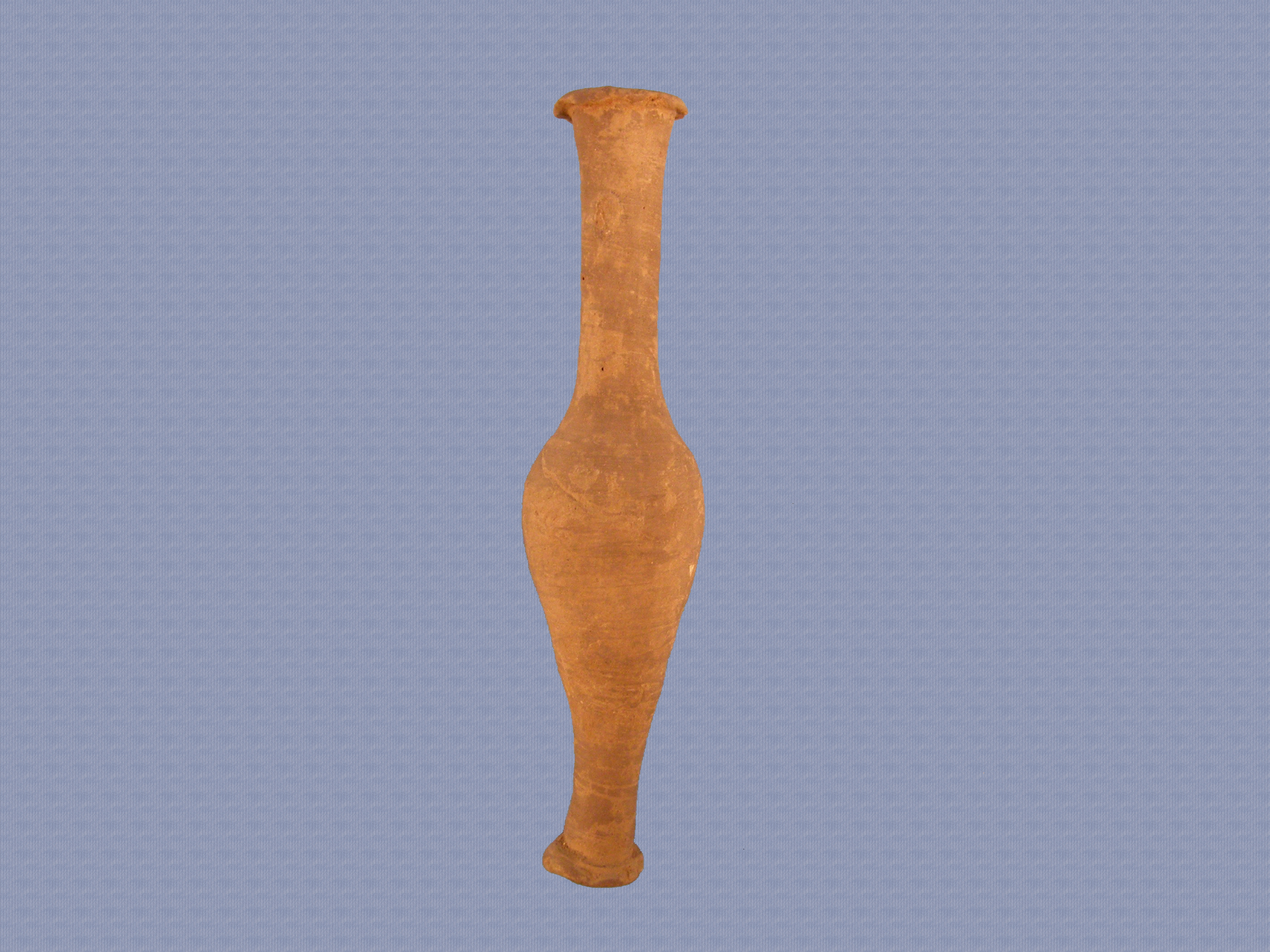 Μυροδοχείο, αποκεκρουμένο περιμετρικά του χείλους και της βάσης. Έχει χείλος λοξότμητο και λαιμό ψηλό κυλινδρικό, που ευρύνεται ελαφρώς κοντά στο στόμιο. Το σώμα είναι λεπτό, απιόσχημο και στενεύει για να σχηματίσει ένα κυλινδρικό πόδι. Μια έντονη κυκλική αύλακα διαχωρίζει το πόδι από τη δακτυλιόσχημη βάση. Στο κέντρο της αθέατης επιφάνειας στήριξης υπάρχει κοιλότητα.